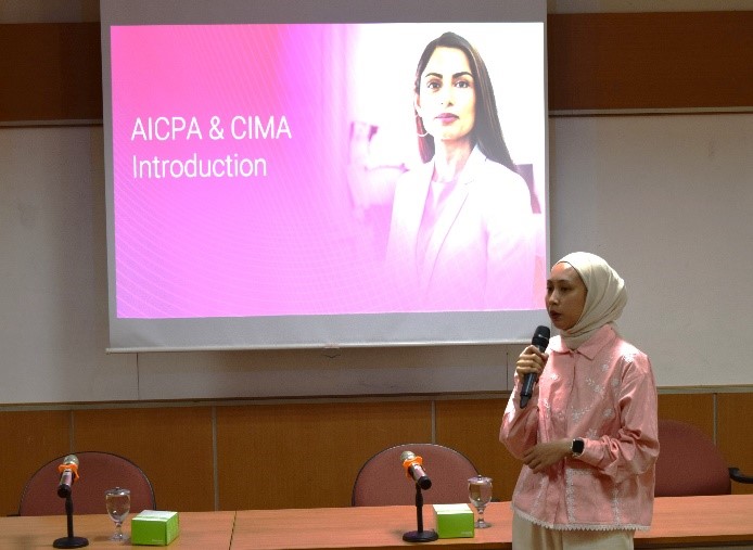 Sebelum sesi utama, perwakilan dari CIMA, Mulky Belladina, memberikan paparan singkat mengenai kerja sama MAKSI–PPAk. FEB UI dan CIMA, serta peluang percepatan sertifikasi Chartered Global Management Accountant (CGMA) bagi mahasiswa. Ia menjelaskan struktur kurikulum, kompetensi yang dikembangkan, mekanisme waiver, serta dukungan pembelajaran bagi mahasiswa yang berminat melanjutkan sertifikasi internasional tersebut.